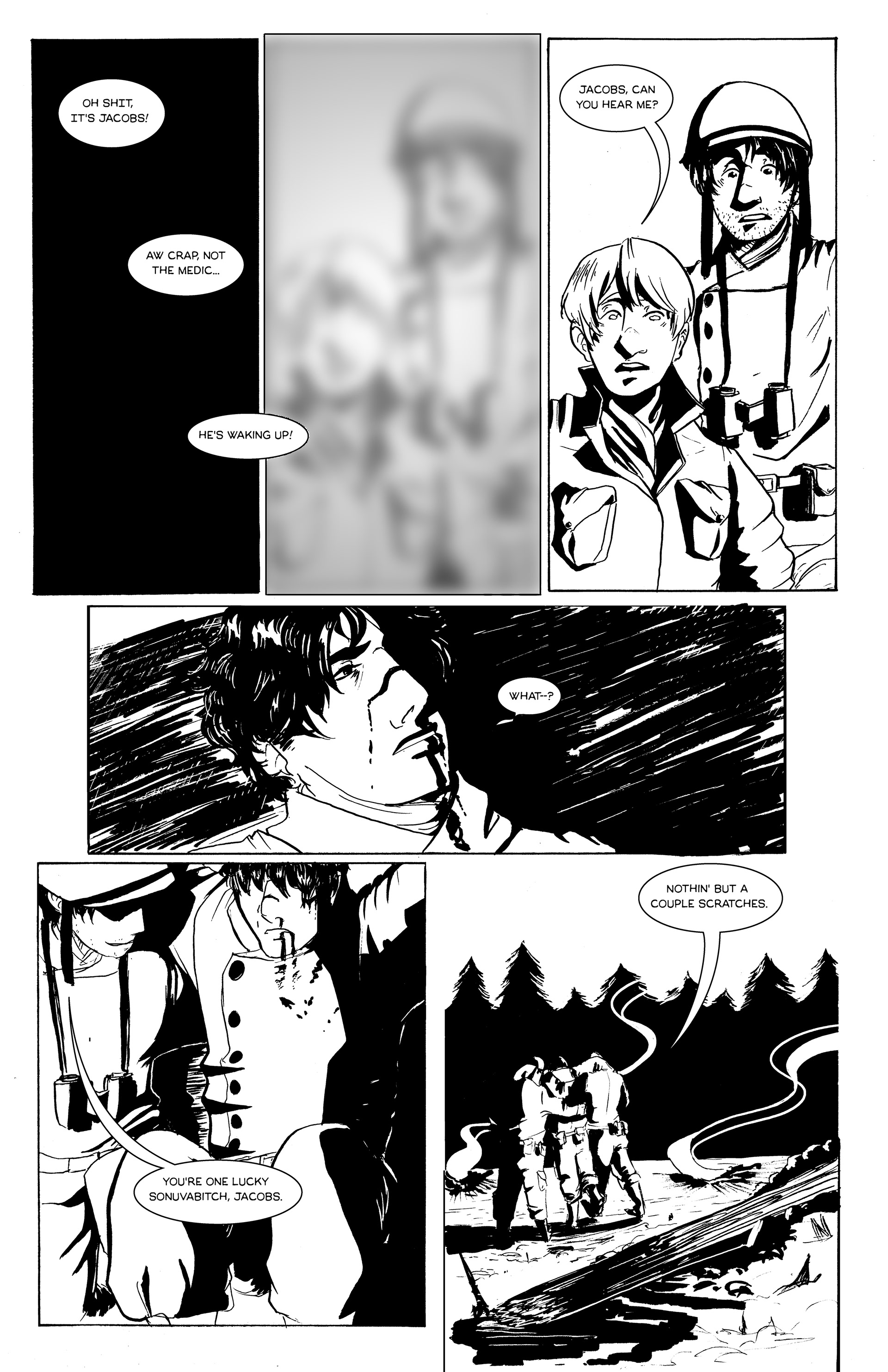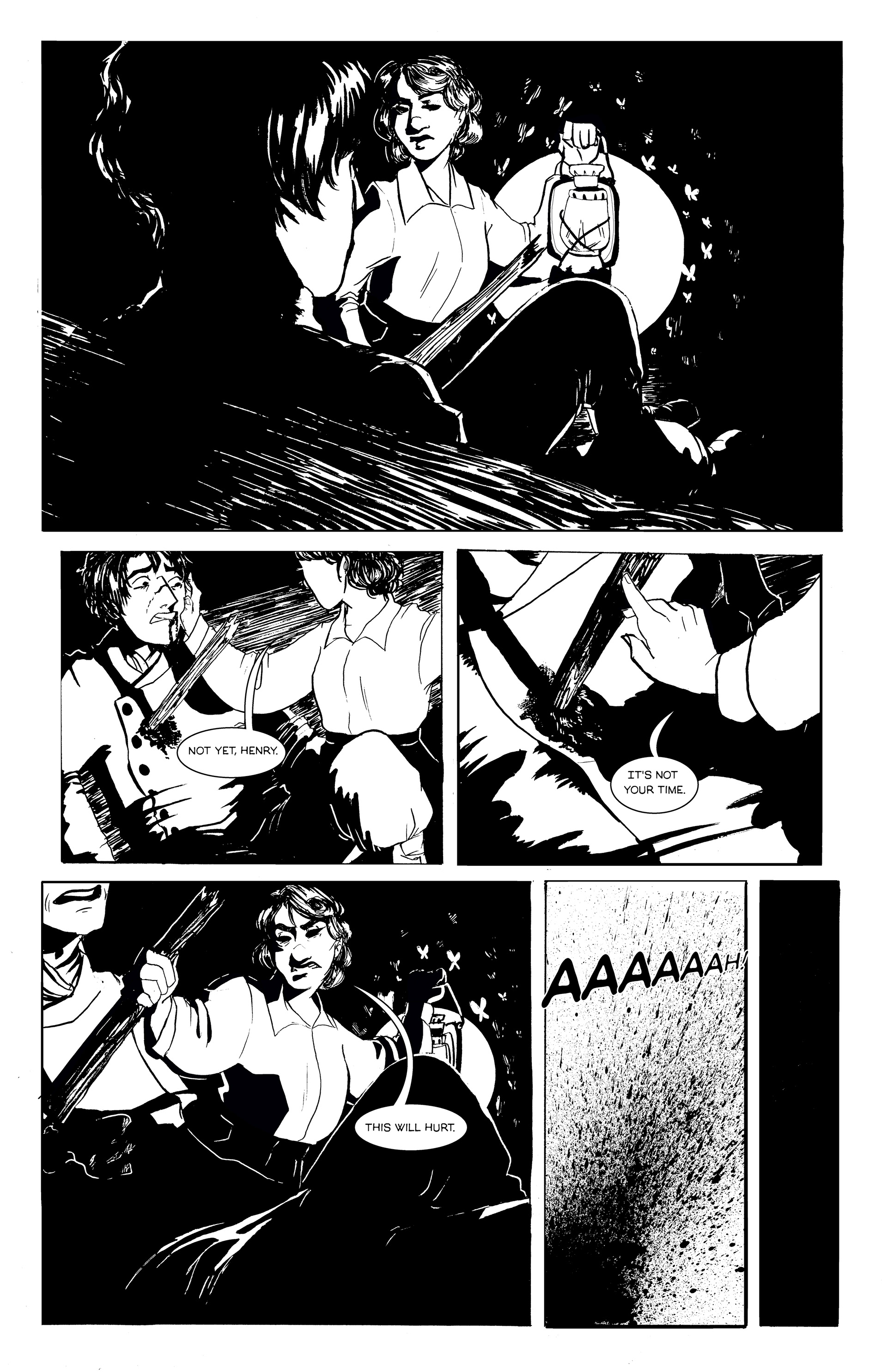 The final inks and letters of 'Lamb', a ten page comic detailing how one man escaped-- or really, was given a second chance-- by death.